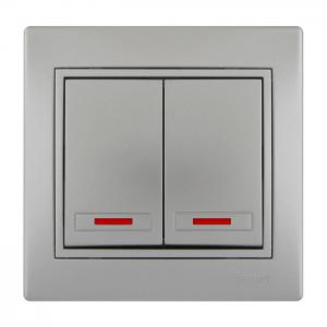 Lezard Myra Выключатель 2 кл. с подсветкой серебро